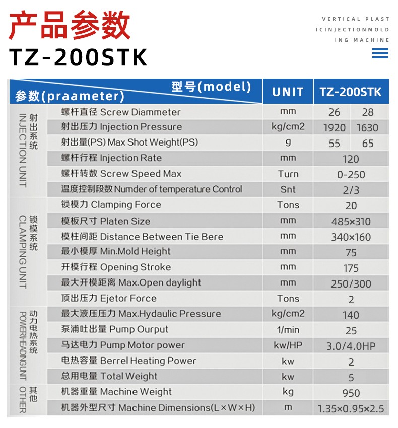 TZ-200STK電腦立式(shi)注塑機特(tè)性: