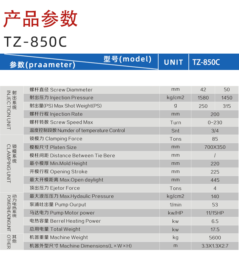 TZ-850C全新伺服注(zhu)塑機立式注塑機(jī)