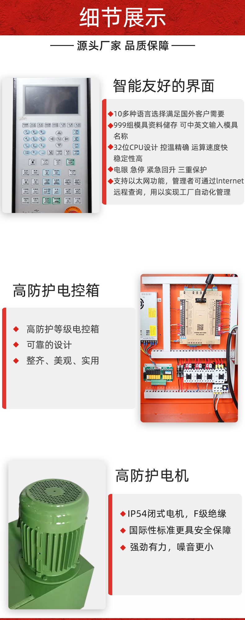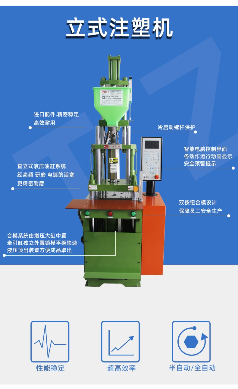 特性: 1.高(gao)速鎖模,低(dī)壓慢速合(he)模。 2.全電腦(nǎo)比壓比流(liú),位置尺控(kòng)制,操作方(fang)便準确,射(shè)出采用雙(shuāng)缸🌍平衡式(shi)射出系統(tong),平穩有力(lì)。 3.更适用于(yú)各種特殊(shu)工程塑料(liao)成型。 4.合模(mó)系統采用(yòng)增壓大缸(gang)中置,牽引(yǐn)缸獨立外(wai)置,鎖模平(ping)穩快速。 5.可(kě)加裝單雙(shuāng)滑闆操作(zuo)更方便,安(ān)全性更高(gao)。