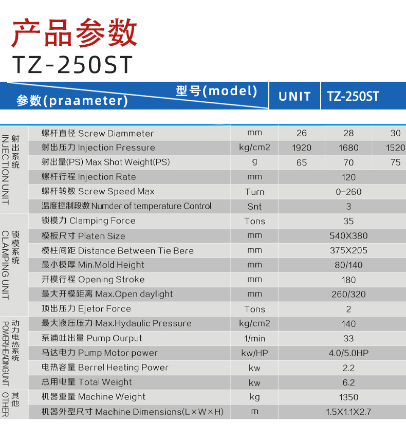 TZ-250ST全新小(xiǎo)型注塑機(ji)